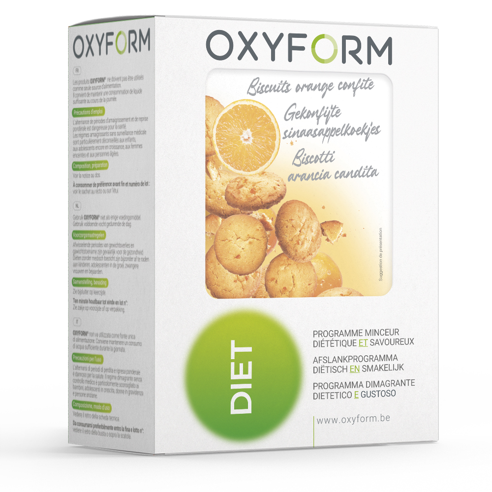 Protéines de lait, huile de palme, farine de blé, sucre, gluten de blé, amidon de blé, écorces d'orange confites (écorces d'orange, sirop de glucose) (3,8%), blancs d'oeuf en poudre, sirop d'orge maltée, arôme naturel d'orange, poudres à lever : diphosphates - carbonates de sodium (contient : farine de blé) - carbonates d'ammonium, germes de blé, protéines de blé, vitamines (E, B1, B2, PP, B6, B9).
